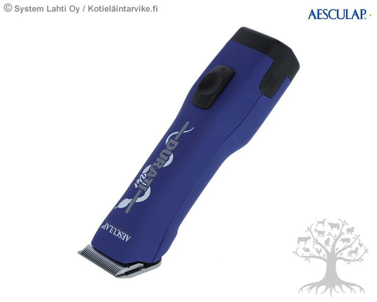 Aesculap Karvaleikkuri Durati VET. Aesculap Durati VET karvaleikkuri sopii erityisesti eläinlääkäreille, mutta myös hevosten ja lehmien yksityiskotien klippaamiseen. Durati Vet karvaleikkurissa on SnapOn 40 terä, joka jättää 0.25mm karvan. Kevyt, optimaalisesti tasapainotettu ja erittäin helppokäyttöinen. Suuri leikkausnopeus korkean iskunopeuden, 3 500 iskun minuutissa, ansiosta tarkka leikkaus. Tehokas ladattava akku litiumioniteknologialla mahdollistaa erittäin pitkän, yli 3 tunnin akun käyttöajan. Ergonomisesti muotoiltu pitoalue kädensijassa. Väsymätön toiminta erittäin pienen painonsa ansiosta. Valmistettu Saksassa.