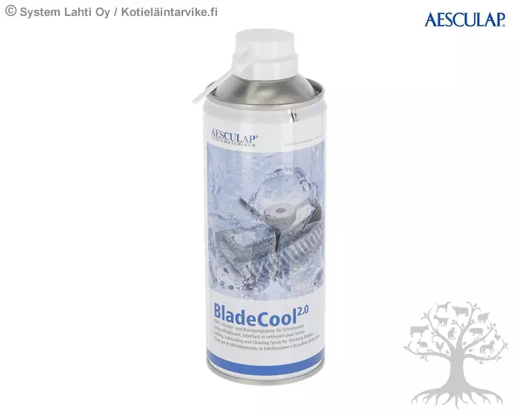 Aesculap Klipperispray BladeCool 400ml. Parannettu koostumus 3 in 1 -vaikutuksella! Jäähdytys, voitelu ja puhdistus. Parantaa leikkaustulosta ja pitää terät terävänä pidempään. Poistaa karvat, pölyn ja lian. Estää bakteerien, sienten ja virusten kehittymisen. Terien puhdistus ja huolto lisää niiden käyttöikää. Helppokäyttöinen: suihkuta teräsarja ennen käyttöä, käytettäessä ja käytön jälkeen. Pakkauskoko: 400ml.