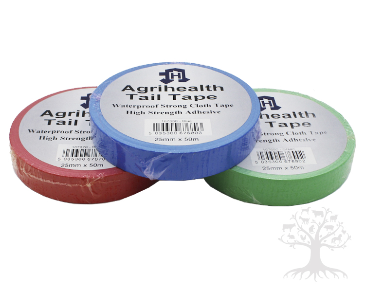 Agrihealth Häntäteippi 50m . Häntäteippi on vedenkestävä ja vahva kangasteippi, jossa on voimakas liima. Häntäteippi sopii hyvin eläinten merkkaamiseen. Mitat: 25mm x 50m. Värit: Punainen, Sininen ja Vihreä.