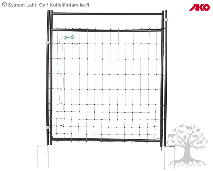 Ako Aitausverkon portti 105cm. Portti sähköisiin aitausverkkoihin. Portti mahdollistaa nopean läpikulun aitauksen sisälle ja pois. Käytännöllinen portti sähköaitaukseen. Helppo asentaa. Portti voidaan asentaa minne tahansa aitausverkkoa. Voidaan myös jälkiasentaa. Portin tukeva runko on eristetty, mutta portin vihreässä verkossa on sähkö. Porttia avatessa ei tarvitse kytkeä sähköä pois päältä. Portin leveys on 86cm ja korkeus 105cm. Sisältää kaksi tolppaa ja johdot sähköaitausta varten. 105cm portti soveltuu kaikille 90cm korkeille aitausverkoille.