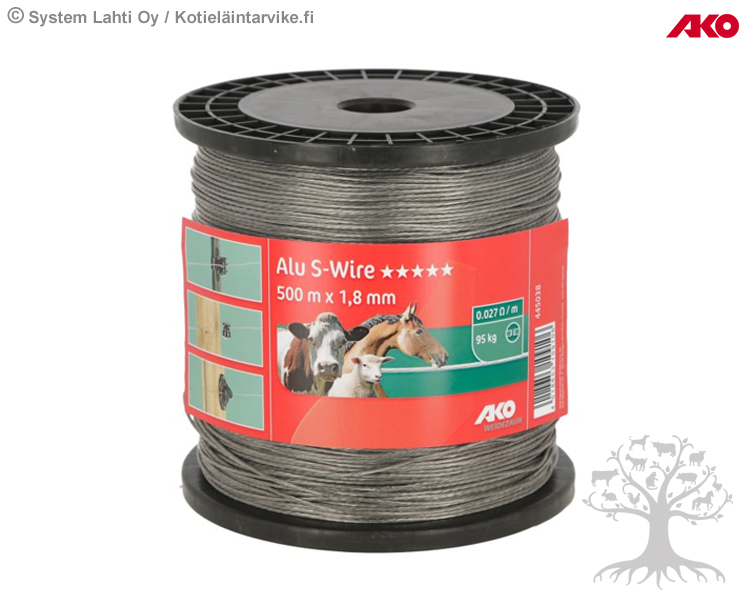 AKO Aitavaijeri Alu S-Wire Stranded. AKO Alu S-Wire Stranded on 7 säikeinen alumiininen aitavaijeri. Alumiinilla on erinomainen sähkön johtavuus, alumiinin sähkön johtavuus jopa 4 kertaa parempi kuin perinteisellä teräslangalla. Alumiinivaijeri on kevyttä ja taipuisaa, joten sitä on helppo ja kevyt käsitellä asennuksen aikana. Alu S-Wire Stranded alumiinivaijerissa on suurempi murtolujuus magnesiumlisän ansiosta.