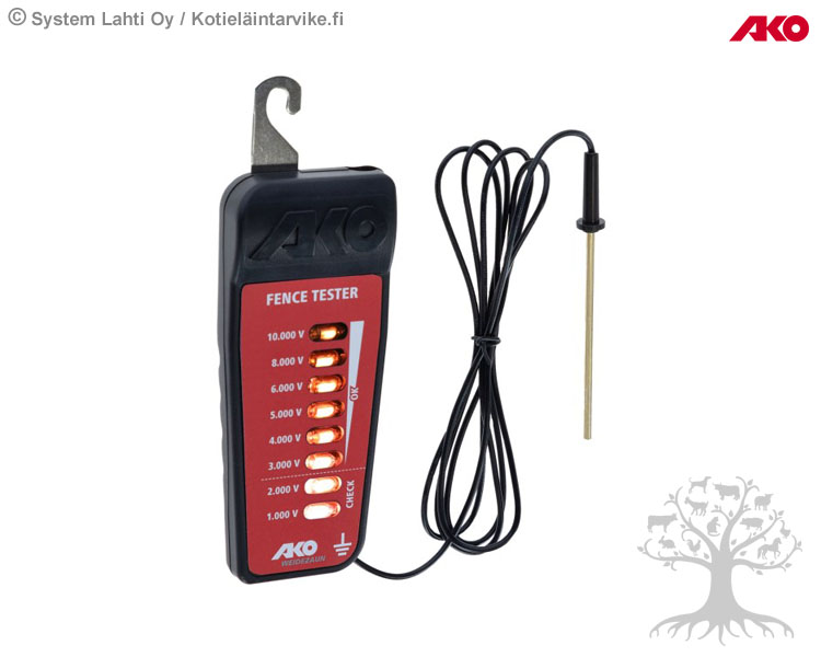 Ako Testimittari 10,000V. Laadukas ja tarkka testimittari sähköaidan jännitteen mittaukseen. Testimittari osoittaa jännitteen voimakkuuden kahdeksassa tasossa 1 000V -10 000V. Ei tarvitse paristoja.