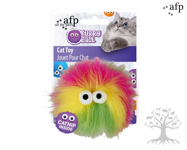 All for Paws Kissanlelu Furry Ball Yellow. Ihanan pehmoinen ja pörröinen kissanlelu. Mörrimöykynnäköinen karvapallo sisältää kissanminttua, joka saa kissasi innostumaan lelusta entistäkin enemmän.