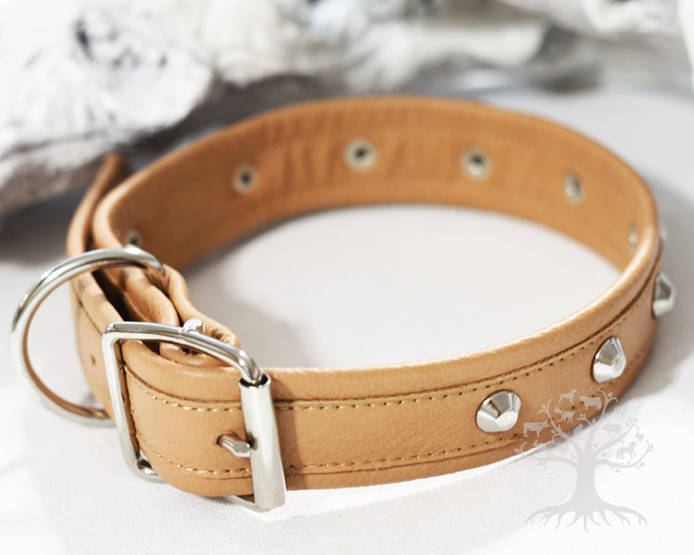Arli Koristeniittipanta, beige. Näyttävä koristeniittipanta koirille. Kotimainen ja laadukas, panta on valmistettu 100% suomalaisesta nahasta. Pannassa on sisällä venymätön kudos, jonka ansiosta nahka pysyy hyvin kuosissaan eikä pääse venymään. Pantakilpi nimen kaivertamista varten. Väri: beige. Kotimaista käsityötä!