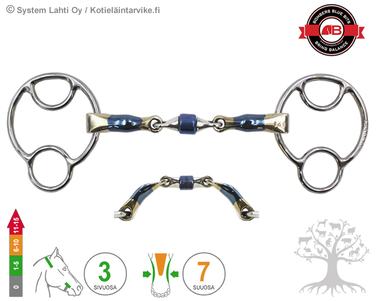 Bombers 2½ -ring Miia Elliptical Roller. Elliptical Roller on suun myötäisesti kaarevaan muotoon muotoilu 3-palakuolain, joka jakaa kuolaimen aiheuttaman paineen tasaisesti koko suun alueelle. Kuolaimen keskipalassa on vapaasti pyörivä sylinteri, jonka tarkoituksena on ylläpitää hevosen kiinnostusta sen suussa olevasta kuolaimesta, jolloin se keskittyy paremmin ratsastajan ohjasapuihin ympäristön "häiriötekijöistä" huolimatta (kilpailutilanteet).