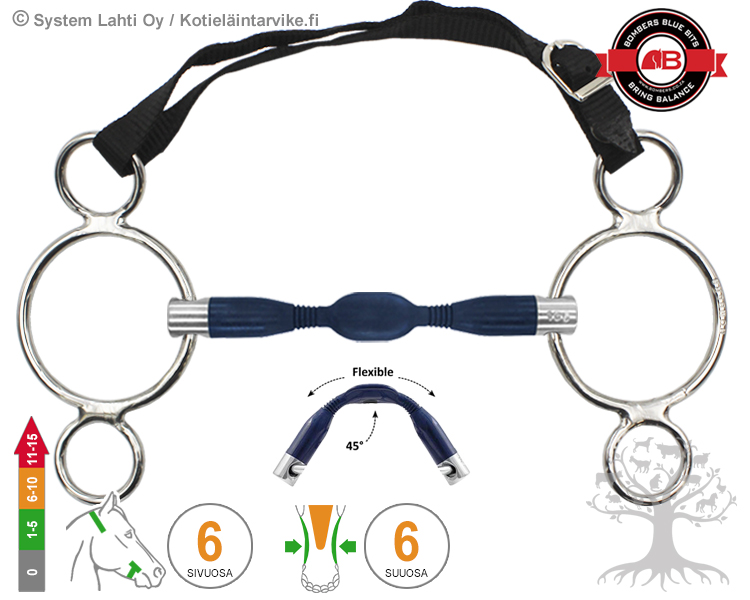 Bombers 3 -Ring Moulded Preferred Contact. Uudessa patentoidussa Preferred Contact kuolaimessa on litteä/laattamainen keskipala, joka on suuosassa kiinni kielensuuntaisesti 45° kulmassa. Kuolaintuntumalla kuolain on vaikutuksiltaan pehmeä antaen tilaa hevosen kielelle ja jakaen kuolaimen aiheuttaman paineen tasaisesti laajemmalle alueelle. Jos hevonen laskee päätään/leukaa liian alas tai liian ylös, niin kuolaimen laattamainen keskipala “kääntyy” aiheittaen painetta hevosen kielelle ohjaten sitä takaisin kuolaintuntumalle. Kuolaimen anatominen muotoilu ja kestävä kumimainen materiaali tekee kuolaimesta hyvin ainutlaatuisen. Kuolaimissa on mukana Bombersille tunnusomaiset oranssit väriset kuolaintutit.