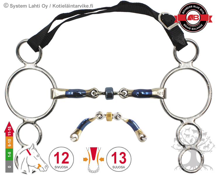 SIVUOSA - 4 -ring on vapaasti pyörivä monirenkainen kuolainrengas, jossa on ylä- ja alapuoliset "lisärenkaat" sekä leukahihna. 4 -renkainen kuolainrengas tunnetaan myös nimillä Pessoa- ja Olympiakuolain. Ylimmistä renkaista kuolain kiinnitetään poskihihnoihin ja keski- ja/tai alarenkaisiin kiinnitetään yhdet tai kahdet ohjat tarpeen mukaan. Kuolaimen vipuvaikutus määräytyy sen mukaan, mihin renkaisiin ohjat kiinnitetään, isoimmissa renkaissa kuolaimen vipuvaikutus on pehmein ja alimmissa renkaissa voimakkain. Kuolaimen ylimmissä renkaissa on leukahihna, jolla säädetään kuolaimen vipuvaikutusta sekä alaleukaan kohdistuvaa painetta. Leukahihna säädetään niin, että kuolaimen vipukulma on noin 45° kulmassa (älä kiristä liian tiukalle). Vapaasti pyörivässä kuolainrenkaassa kuolaimen suuosa pääsee liukumaan helposti ja nopeasti, joten ratsastajan ohjasavut siirtyvät ja vapautuvat kuolaimen suuosaan kiinteää kuolainrengasta huomattavasti nopeammin. Lisäksi 4 -renkaisessa sivuosassa on myös sivuittaissuuntaista (cheek) ohjaavaa vaikutusta. Sisältää säädettävän nylonisen leukahihnat, jossa on kätevä nepparikiinnitys. Huom! 4 -renkainen on vaikutuksiltaan erittäin vahva vipukuolain, joten se soveltuu vain kokeneille ratsastajille!