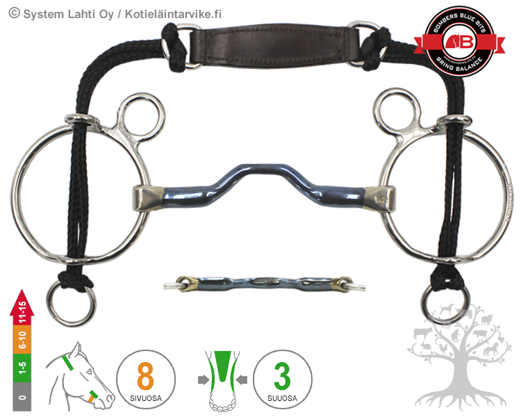 Happy Tongue Straight sopii parhaiten hevosille, joilla on mm. erityisen herkkä/iso kieli, matala/ahdas/herkkä hammasloma, “terävät” hammasloman ikenien alla olevat luupinnat sekä vaikeuksia hyväksyä kuolaintuntumaa. Suoralinjaiset kielentilalliset kuolaimet sopii myös hevosille, joilla on ns. “short smile” eli lyhyt etu- ja poskihampaiden välinen hammasloma. Kuolaimen suuosa on valmistettu Bombersin kehittämästä, ainutlaatuisesta ja erittäin hyvin sylkeä stimuloivasta makeasta raudasta eli "Sweet Iron" -metalliseoksesta.