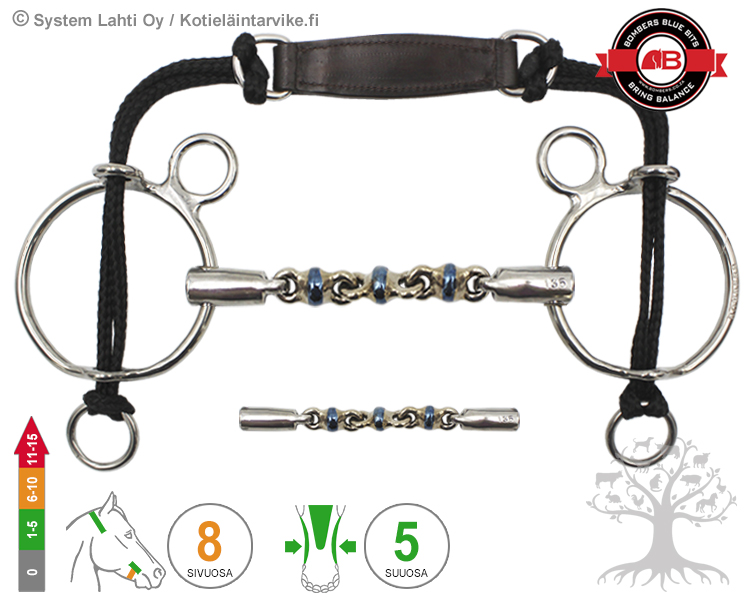 Bombers Curb Gag Waterford. Waterford on 5-palainen ketjukuolain, joka jakaa kielelle ja hammaslomaan kohdistuvan paineen ja puristuksen erittäin tasaisesti. Waterford kuolaimen nivelletyt palat ovat pyöreän muotoisia, joten ne aiheuttavat tasaisin välein hieman pistemäisiä painekohtia hevosen kieltä ja kitalakea vasten. Vaikutuksiltaan pehmeä ja hevosen suuta myötäilevä kuolain rohkaisee hevosta tukeutumaan paremmin kuolaintuntumalle. Waterford kuolaimissa suositellaan käytettävän “normaalimittaa” 10mm pidempää kuolainta, että taipuisa “ketjukuolain” pääsee muotoutumaan paremmin hevosen suun myötäisesti. Pidempi kuolain maksimoi myös kuolaimen vaikutuksen. Kuolaimen suuosa on valmistettu Bombersin kehittämästä, ainutlaatuisesta ja erittäin hyvin sylkeä stimuloivasta makeasta raudasta eli "Sweet Iron" -metalliseoksesta.