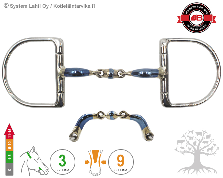 Elliptical Dressage kuuluu Bombersin 4.kuolainkategoriaan, 2 Break eli kaksinivelisiin (3-pala) kuolaimiin. Tutustu tarkemmin kuolaimien vaikutuksiin ja ominaisuuksiin TÄSTÄ!