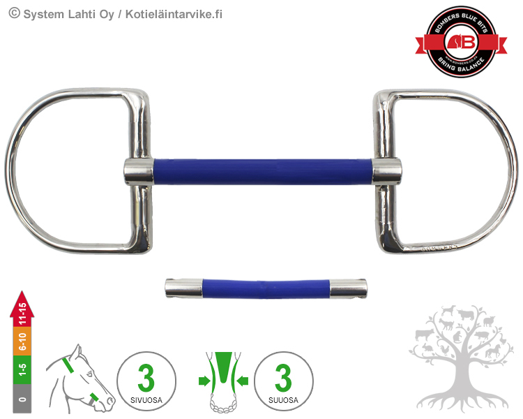SIVUOSA - D-ring on kiinteä D-renkaan muotoinen kuolainrengas, joka tunnetaan myös nimellä Dee. Kiinteä kuolainrengas vapauttaa suuosan ohjastuntumalta hitaammin kuin vapaasti pyörivä kuolainrengas (Loose Ring), joten se tehostaa kuolaimen suuosan vaikutusta ja aiheuttaa hieman hevosen niskaan (poll) kohdistuvaa painetta/vipuvaikutusta. D-renkaan suorat reunat asettuvat tasaisesti hevosen suupieliä/poskia vasten ja antaa vakaamman kuolaintuntuman sekä ehkäisee kuolainrengasta nipistämästä hevosen suupieliä. Lisäksi kiinteillä ja korkeilla D-renkaan muotoilulla on myös sivuittaissuuntaista (cheek) ohjaavaa vaikutusta. Sopii erityisesti nuorille ja suupielistään herkille hevosille. Kuolainrenkaan koko on noin 66x68mm (korkeus x leveys) pituuksille 90-115mm ja noin 92x82mm pituuksille 120-160mm.