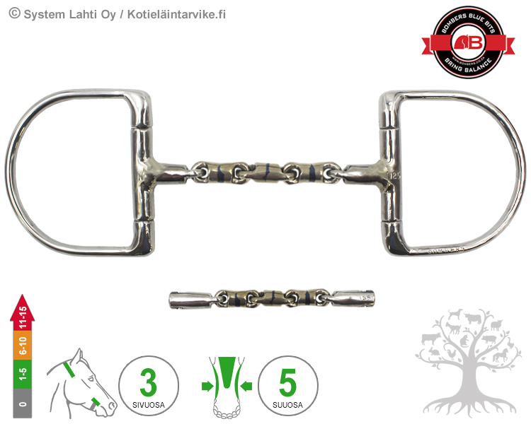 Bombers D-ring Waterford Barrel. Waterford Barrel on 5-palainen ketjukuolain, joka jakaa kielelle ja hammaslomaan kohdistuvan paineen ja puristuksen erittäin tasaisesti. Waterford Barrel kuolaimessa on sylinterin muotoiset sileät nivelpalat ja pienet nivelrenkaat (nivelkohdat), jotka tekevät 5-palakuolaimesta tavanomaista paljon sileämmän, tasaisemman ja pehmeämmän sekä miellyttävämmän hevosen kieltä, kitalakea ja hammaslomaa vasten. Lisäksi Waterford Barrel kuolaimessa on pidemmät ja suoremmat reunapalat, jotka jakavat painetta tasaisemmin ja pehmeämmin hevosen hammaslomaan. Waterford Barrel sopii hyvin myös suupielistään herkille ja paksumpi huulisille hevosille.