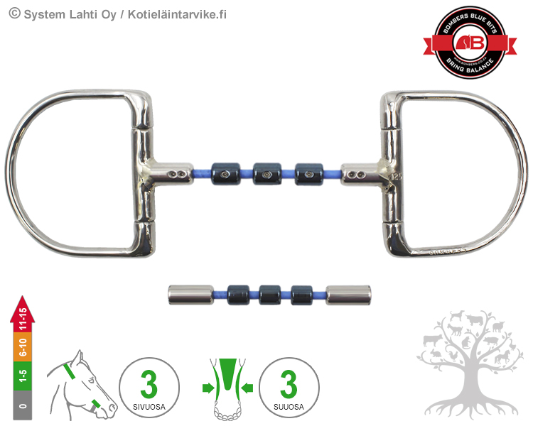 Bombers D-ring Waterford Cable Barrel. Waterford Cable Barrel on 5-palainen kaapelikuolain, joka jakaa kielelle ja hammaslomaan kohdistuvan paineen ja puristuksen erittäin tasaisesti. Waterford Cable Barrel -kuolaimessa on kolme sylinterin muotoista nivelpalaa, jotka aiheuttavat pehmeää ja tasaista painetta hevosen kieltä vasten. Lisäksi kuolaimessa on tavanomaista 5-palakuolainta pidemmät ja suoremmat reunapalat, joten se sopii hyvin myös paksumpi huulisille sekä suupielistään ja hammaslomastaan herkemmille hevosille. Vaikutuksiltaan pehmeä ja hevosen suuta myötäilevä kuolain rohkaisee hevosta tukeutumaan paremmin kuolaintuntumalle. Waterford Cable Barrel on tavanomaista 5-palakuolainta yhtenäisempi, tasaisempi ja paljon pehmeämpi. Sopii erittäin hyvin myös kielestään herkille hevosille.