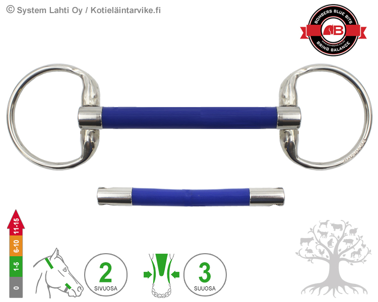 Bombers Eggbutt Flexible Mullen. Flexible Mullen kuolaimen “sisärunko” on valmistettu taipuisasta ruostumattomasta teräskaapelista, joka on päällystetty myrkyttömällä ja UV-säteilyn kestävällä silikonituubilla. Kuolaimen “sisäkaapeli” taipuu ja kääntyy hitaasti, pehmeästi ja portaattomasti eri suuntiin ohjasapujen mukaisesti sekä palautuu taivutuksen jälkeen heti omaan muotoonsa “spring-back”. Kaapelin “spring-back” ominaisuus palkitsee hevosta välittömästi, kun se vastaa haluttuun pidätteeseen ja/tai kääntöapuun. Flexible Mullen on vaikutuksiltaan erittäin pehmeä kuolain, joten se sopii hyvin nuorille hevosille ja hevosille, jotka vastustavat metallista valmistettuja kuolaimia mm. pelaamalla kuolaimella ja/tai olemalla suustaan hyvin levottomia. Tutustu lisää kouluhyväksyttyihin kuolaimiin TÄSTÄ!