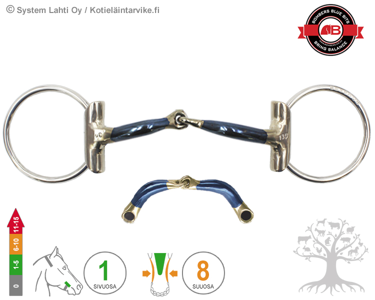 Snaffle Ultra Comfy kuuluu Bombersin 4.kuolainkategoriaan, 2 Break eli kaksinivelisiin (3-pala) kuolaimiin. Tutustu tarkemmin kuolaimien vaikutuksiin ja ominaisuuksiin TÄSTÄ!