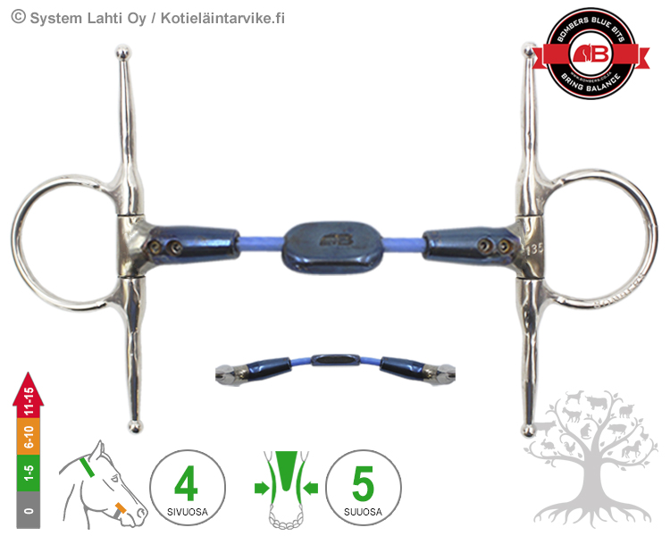 Bombers Full Cheek Control Plate Cable. Control Plate Cable on uusi innovatiivinen ja patentoitu kuolain, jonka “sisärunko” on valmistettu taipuisasta ja teräsvahvistetusta kaapelista. Control Plate Cable kuolaimessa on litteä/laattamainen "plate" keskipala, joka on suuosassa kiinni kielensuuntaisesti 45° kulmassa. Kuolaintuntumalla kuolain on vaikutuksiltaan pehmeä antaen tilaa hevosen kielelle ja jakaen kuolaimen aiheuttaman paineen tasaisesti laajalle alueelle. Jos hevonen laskee päätään/leukaa liian alas tai liian ylös, niin kuolaimen laattamainen keskipala “kääntyy” ja aiheuttaa painetta hevosen kielelle ohjaten sitä takaisin kuolaintuntumalle. Control Plate Cable on ns. “kontrollikuolain", joka parantaa hevosen hallittavuutta ja ohjaa hevosta laskemaan päätä ja tuomaan leukaa kohti rintaan päin.