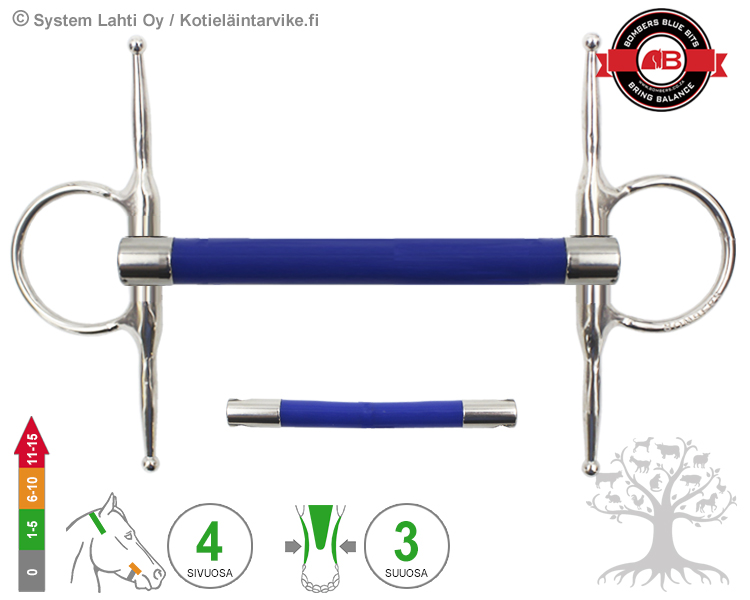 SIVUOSA - Full Cheek on kiinteä varrellinen kuolainrengas, joka tunnetaan myös nimellä Fulmer. Kiinteä kuolainrengas vapauttaa suuosan ohjastuntumalta hitaammin kuin vapaasti pyörivä kuolainrengas (Loose Ring), joten se tehostaa kuolaimen suuosan vaikutusta ja aiheuttaa hieman hevosen niskaan (poll) kohdistuvaa painetta. Kuolainrengas asettuu tasaisesti hevosen suupieliä/poskia vasten ja antaa vakaamman kuolaintuntuman sekä ehkäisee kuolainrengasta nipistämästä hevosen suupieliä. Varrellisella kuolainrenkaalla on erityisesti sivuittaissuuntaista (cheek) ohjaavaa vaikutusta, joten se sopii erinomaisesti nuorille ja suupielistään herkille hevosille, jotka tarvitsevat kääntämistä helpottavia apuja.