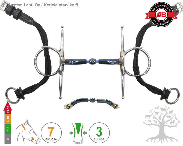 Bombers Full Cheek Gag Elliptical Cable. Elliptical Cable on uusi innovatiivinen ja patentoitu kuolain, jonka “sisärunko” on valmistettu taipuisasta ja teräsvahvistetusta kaapelista. Kaapelikuolain taipuu ja kääntyy hitaasti, pehmeästi ja portaattomasti eri suuntiin ohjasapujen mukaisesti sekä palautuu taivutuksen jälkeen heti omaan muotoonsa “spring-back”. Kaapelikuolaimen “spring-back” ominaisuus palkitsee hevosta välittömästi, kun se vastaa haluttuun pidätteeseen ja/tai kääntöapuun. Kaapelikuolain on suuosaltaan erittäin miellyttävä ja pehmeä, koska siinä ei ole lainkaan pistemäisiä painekohtia aiheuttavia nivelrenkaita (nivelkohtia).
