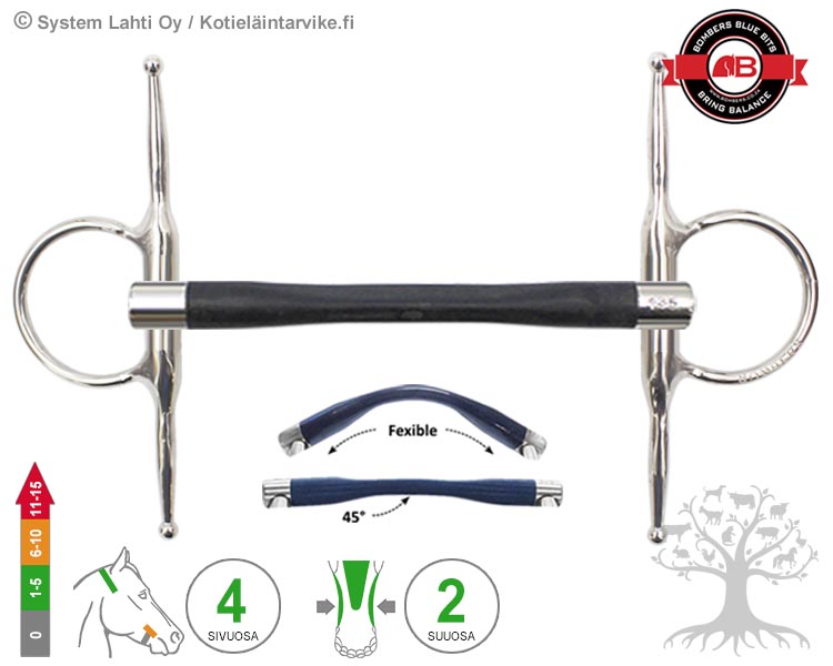 SIVUOSA - Full Cheek on kiinteä varrellinen kuolainrengas, joka tunnetaan myös nimellä Fulmer. Kiinteä kuolainrengas vapauttaa suuosan ohjastuntumalta hitaammin kuin vapaasti pyörivä kuolainrengas (Loose Ring), joten se tehostaa kuolaimen suuosan vaikutusta ja aiheuttaa hieman hevosen niskaan (poll) kohdistuvaa painetta. Kuolainrengas asettuu tasaisesti hevosen suupieliä/poskia vasten ja antaa vakaamman kuolaintuntuman sekä ehkäisee kuolainrengasta nipistämästä hevosen suupieliä. Varrellisella kuolainrenkaalla on erityisesti sivuittaissuuntaista (cheek) ohjaavaa vaikutusta, joten se sopii erinomaisesti nuorille ja suupielistään herkille hevosille, jotka tarvitsevat kääntämistä helpottavia apuja.