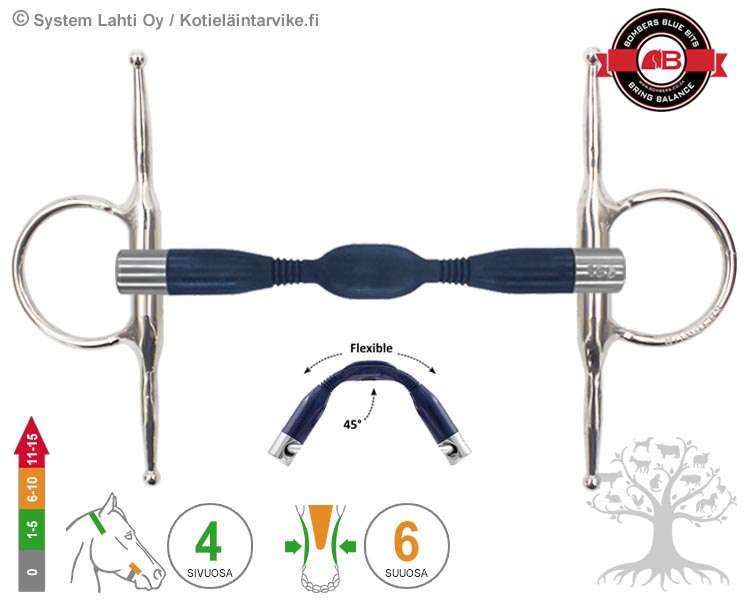 Bombers Full Cheek Moulded Preferred Contact. Uudessa patentoidussa Preferred Contact kuolaimessa on litteä/laattamainen keskipala, joka on suuosassa kiinni kielensuuntaisesti 45° kulmassa. Kuolaintuntumalla kuolain on vaikutuksiltaan pehmeä antaen tilaa hevosen kielelle ja jakaen kuolaimen aiheuttaman paineen tasaisesti laajemmalle alueelle. Jos hevonen laskee päätään/leukaa liian alas tai liian ylös, niin kuolaimen laattamainen keskipala “kääntyy” aiheittaen painetta hevosen kielelle ohjaten sitä takaisin kuolaintuntumalle. Kuolaimen anatominen muotoilu ja kestävä kumimainen materiaali tekee kuolaimesta hyvin ainutlaatuisen. Kuolaimissa on mukana Bombersille tunnusomaiset oranssit väriset kuolaintutit.