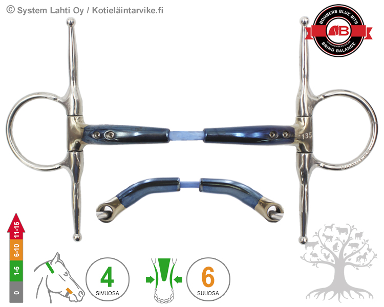SIVUOSA - Full Cheek on kiinteä varrellinen kuolainrengas, joka tunnetaan myös nimellä Fulmer. Kiinteä kuolainrengas vapauttaa suuosan ohjastuntumalta hitaammin kuin vapaasti pyörivä kuolainrengas (Loose Ring), joten se tehostaa kuolaimen suuosan vaikutusta ja aiheuttaa hieman hevosen niskaan (poll) kohdistuvaa painetta. Kuolainrengas asettuu tasaisesti hevosen suupieliä/poskia vasten ja antaa vakaamman kuolaintuntuman sekä ehkäisee kuolainrengasta nipistämästä hevosen suupieliä. Varrellisella kuolainrenkaalla on erityisesti sivuittaissuuntaista (cheek) ohjaavaa vaikutusta, joten se sopii erinomaisesti nuorille ja suupielistään herkille hevosille, jotka tarvitsevat kääntämistä helpottavia apuja.