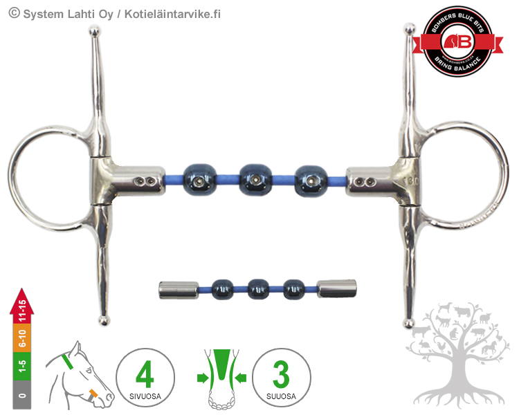 Bombers Full Cheek Waterford Cable. Waterford Cable on 5-palainen kaapelikuolain, joka jakaa kielelle ja hammaslomaan kohdistuvan paineen ja puristuksen erittäin tasaisesti. Waterford Cable -kuolaimessa on kolme pyöreää nivelpalaa (nivelpalloa), jotka aiheuttavat pehmeitä pistemäisiä painekohtia hevosen kieltä vasten. Kaapelikuolaimen nivelpallot asettuvat hevosen kielen päälle siten, että ne ehkäisevät kuolaimen "ylimääräisen" sivuttaisliikkeen ollen näin hevoselle miellyttävämpi ja ohjastuntumalle stabiilimpi "tarkempi" kuolain. Lisäksi Waterford Cable -kuolaimessa on tavanomaista 5-palakuolainta pidemmät ja suoremmat reunapalat, joten se sopii hyvin myös paksumpi huulisille sekä suupielistään ja hammaslomastaan herkemmille hevosille. Vaikutuksiltaan pehmeä ja hevosen suuta myötäilevä kuolain rohkaisee hevosta tukeutumaan paremmin kuolaintuntumalle. Waterford Cable on tavanomaista 5-palakuolainta yhtenäisempi, tasaisempi ja paljon pehmeämpi. Sopii erittäin hyvin myös kielestään herkille hevosille.