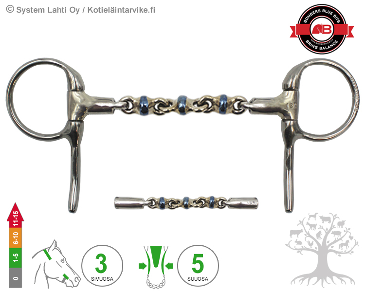 Bombers Half Spoon Waterford. Waterford on 5-palainen ketjukuolain, joka jakaa kielelle ja hammaslomaan kohdistuvan paineen ja puristuksen erittäin tasaisesti. Waterford kuolaimen nivelletyt palat ovat pyöreän muotoisia, joten ne aiheuttavat tasaisin välein hieman pistemäisiä painekohtia hevosen kieltä ja kitalakea vasten. Vaikutuksiltaan pehmeä ja hevosen suuta myötäilevä kuolain rohkaisee hevosta tukeutumaan paremmin kuolaintuntumalle.