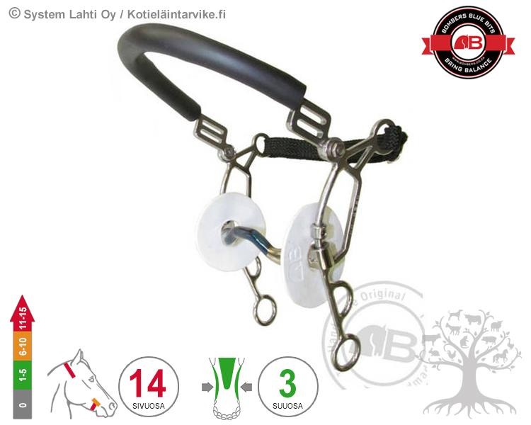 Bombers Hybrid Happy Tongue. Happy Tongue on uniikki kielentilallinen ja eteenpäin kaarettu yksiosainen kuolain, joka on litistetty ja muotoiltu keskiosastaan niin, että se myötäilee hevosen suuta lähes “täydellisesti” sekä minimoi kieleen ja kitalakeen kohdistuvaa painetta. Eteenpäin kaareva kuolaimen muotoilu jakaa kuolaimen aiheuttaman paineen laajemmalle alueelle ollen vaikutuksiltaan hevoselle erittäin pehmeä. Lisäksi eteenpäin kaareva muotoilu rohkaisee hevosta rentouttamaan niskansa ja pidentämään kaulaansa sekä nostamaan leukaa kohti rintaan päin eli ns. “kantamaan itseään”.