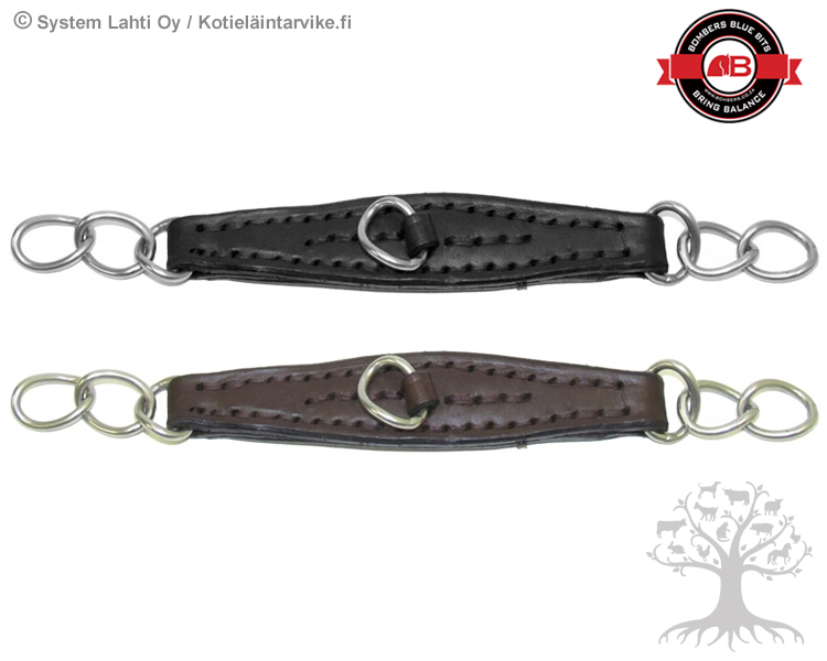 Bombers Kankiketju Leather Curb Chain. Laadukas nahkainen kankiketju. Ketjun kokonaispituus noin 24cm, nahkaosan pituus noin 12,5 cm ja leveys leveimmästä kohtaa 2,5cm. Metallinen ketjuosa.