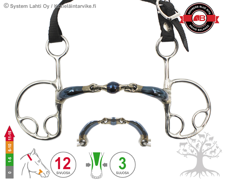 Bombers Kimblewick Elliptical Ultra Comfy Lock Up. Elliptical Ultra Comfy Lock Up on uusi innovatiivinen ja uniikki kahteen suuntaan (eteen- ja ylöspäin) lukittuva 3-palakuolain, jolla on hevosta kuolaintuntumalle erittäin rohkaiseva ja palkitseva vaikutus. Tämä anatomisesti huippuunsa suunniteltu ja muotoiltu kuolain myötäilee hevosen suun muotoja lähes “täydellisesti” ja jakaen kieleen ja hammaslomaan kohdistuvan paineen erittäin tasaisesti. Keskiosaan päin nousevat sivunivelet (kielentilamuotoilu) antavat hyvin tilaa myös kielelle, joten kuolain sopii myös kielestään herkille hevosille. Kahteen suuntaan lukittuva 3-palakuolain estää kuolainta aiheuttamasta hevosen kitalakeen kohdistuvaa pistemäistä painetta sekä hammaslomiin kohdistuvaa puristusta eli ns. pähkinänsärkijäefektiä.