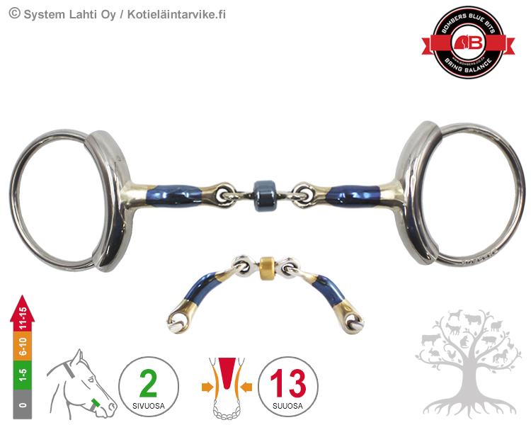 SIVUOSA - Loose Ring Tube on vapaasti pyörivä kuolainrengas, jossa on hevosen suupieliä suojaavat tuubirenkaat (sleeved). Tuubirenkaat asettuvat tasaisesti hevosen suupieliä/poskia vasten ja antaa vakaan kuolaintuntuman hevosen suuhun ja lisää sivuttaissuuntaista ohjaavaa vaikutusta. Lisäksi ne estävät kuolainrengasta nipistämästä suupieliä ja liukumasta hevosen suuhun. Vapaasti pyörivässä kuolainrenkaassa kuolaimen suuosa pääsee liikkumaan helposti ja nopeasti, joten ratsastajan ohjasavut siirtyvät kuolaimen suuosaan kiinteää kuolainrengasta huomattavasti nopeammin. Vapaasti pyörivä kuolainrengas on hevoselle pehmein, neutraalein ja miellyttävin kuolaimen sivuosa, jota kannattaa aina ensisijaisesti käyttää. Sopii erityisesti nuorille ja suupielistään herkille hevosille. Kuolainrenkaan halkaisija on noin Ø67mm pituuksille 90-115mm ja noin Ø78mm pituuksille 120-160mm.