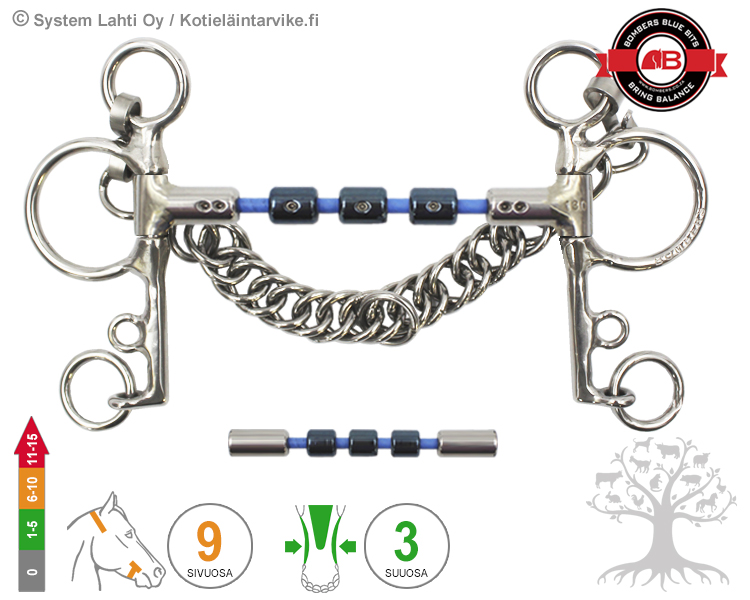 Bombers Pelham Waterford Cable Barrel. Waterford Cable Barrel on 5-palainen kaapelikuolain, joka jakaa kielelle ja hammaslomaan kohdistuvan paineen ja puristuksen erittäin tasaisesti. Waterford Cable Barrel -kuolaimessa on kolme sylinterin muotoista nivelpalaa, jotka aiheuttavat pehmeää ja tasaista painetta hevosen kieltä vasten. Lisäksi kuolaimessa on tavanomaista 5-palakuolainta pidemmät ja suoremmat reunapalat, joten se sopii hyvin myös paksumpi huulisille sekä suupielistään ja hammaslomastaan herkemmille hevosille. Vaikutuksiltaan pehmeä ja hevosen suuta myötäilevä kuolain rohkaisee hevosta tukeutumaan paremmin kuolaintuntumalle. Waterford Cable Barrel on tavanomaista 5-palakuolainta yhtenäisempi, tasaisempi ja paljon pehmeämpi. Sopii erittäin hyvin myös kielestään herkille hevosille.