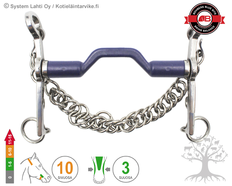 Bomber Blue on litistetty ja muotoiltu keskiosastaan niin, että se myötäilee hevosen suuta lähes “täydellisesti” sekä minimoi kieleen ja kitalakeen kohdistuvaa painetta. Kuolaimen muotoilu jakaa kuolaimen aiheuttaman paineen laajemmalle alueelle ollen vaikutuksiltaan hevoselle erittäin pehmeä. Bomber Blue -kuolaimella on saatu paljon uskomattoman hyviä tuloksia ja siksi se onkin yksi Bombersin suosituimmista kuolaimista. Tutustu lisää kouluhyväksyttyihin kuolaimiin TÄSTÄ!