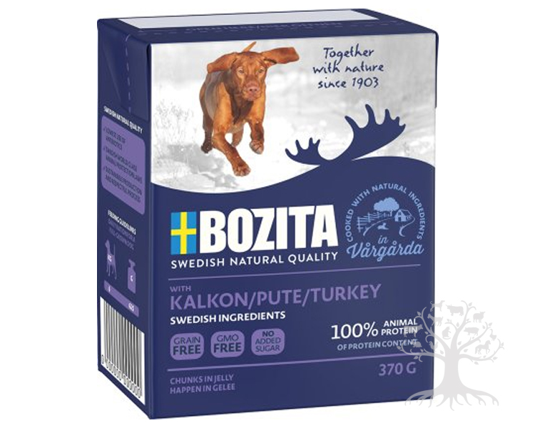 Bozita Naturals Turkey Kalkkunaliha 370g VILJATON. Turkey sisältää täyteläistä ja maistuvaa kalkkunaa. Tavallista herkullisempi makuelämys. Herkulliset palat hyytelössä valmistetaan luonnollisista raaka-aineista ilman vehnää, sokeria, soijaa tai väriaineita. Lisänä luonnollinen MarcoGard®, joka auttaa vahvistamaan koiran immuunisuojaa.