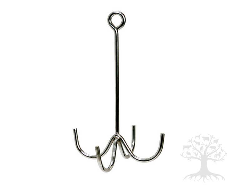 BR Ankkurikoukku. Monikäyttöinen neljähaarainen ankkurikoukku. Ankkurikoukku seinään kiinnitettävän ripustuskoukun kanssa on erityisen kätevä esimerkiksi suitsien ja muiden varusteiden säilytykseen tai suitsien putsausta varten. Valmistettu kromatusta metallista.