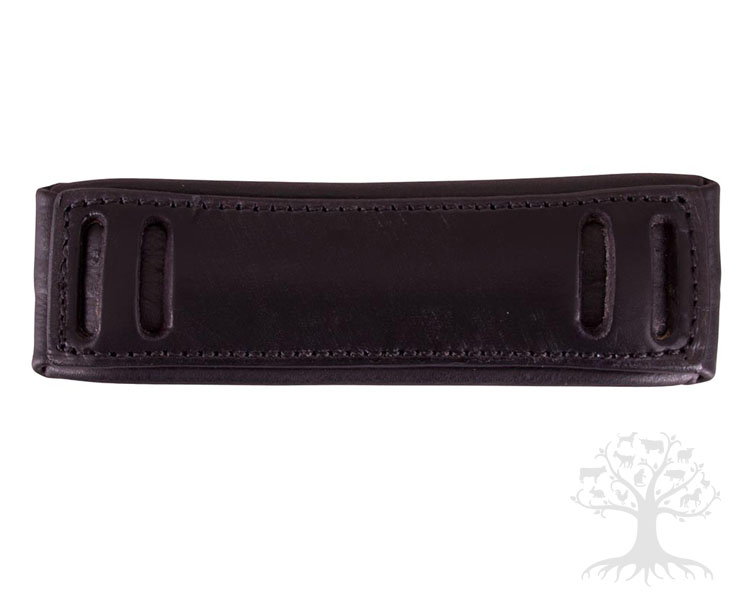 BR Pull Back Turpahihnan Nahkapehmuste Musta. Nahkainen vuorattu pullback-turpahihnan pehmuste. Pehmusteen pituus on 12,5cm ja leveys 2,5cm. Leukahihna kiinnitetään pehmusteeseen pujottamalla leukahihna (nahkahihnan leveys max. 16mm) pehmusteessa olevien solkien läpi. Voidaan käyttää myös kankiketjun pehmusteena.