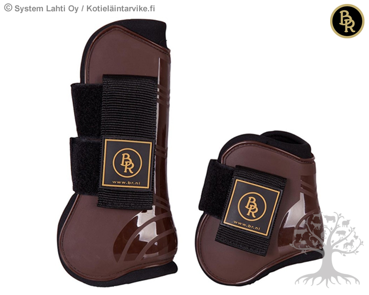 BR Suojasetti Pro Tech Brown. BR:n laadukkaat kestävästä PU –materiaalista valmistetut jännesuojat sekä takajalansuojat samassa paketissa. Suojat on vuorattu pehmeällä neopreenilla ja niissä on kaksi joustavaa ja pitävää tarranauhaa kiinnitystä varten. Helppohoitoiset ja helpot pitää puhtaana.