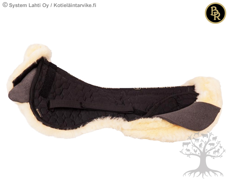 BR Täytettävä Lampaankarvaromani 3in1 Natural. Aidosta ja miellyttävän pehmeästä lampaankarvasta valmistettu anatomisesti muotoiltu täytettävä romaani, joka jakaa painetta tasaisesti hevosen selkää vasten pehmentäen iskuja. Romaania voidaan täyttää/korottaa tarpeen mukaan edestä ja takaa. Romaanin ”täyttötasku” on yhtenäinen. Mukana tulee kahdeksan täytepalaa, neljä noin 0,4cm paksua villahuopa täytepalaa ja 4 memoryfoam täytepalaa. Memoryfoam täyte muotoutuu hevoselle miellyttävällä tavalla ja se palautuu käytön jälkeen alkuperäiseen muotoonsa.