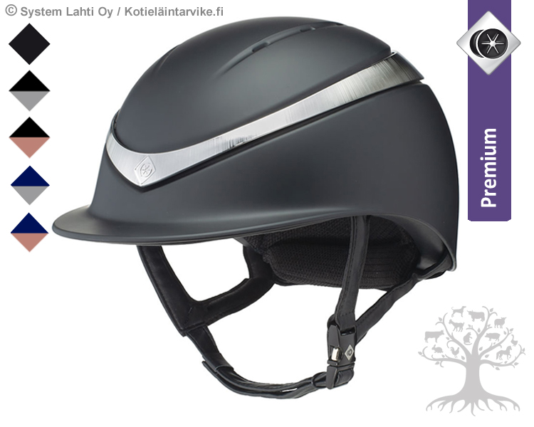 Charles Owen Ratsastuskypärä Halo. Owenin uutuus Halo -kypärämallissa on täysin uudenlainen muotoilu, erittäin tyylikäs moderni ulkonäkö ja suoralinjainen Flexzone -lippa. Charles Owen Halo on malliltaan kapeahko (slim) ja matalaprofiilinen, ja siinä on Owenin uusi 360° "halo" -ilmanvaihtojärjestelmä yhdistyen kuuteen ilmanvaihtoaukkoon, jotka takaavat maksimaalisen ilmanvaihdon.