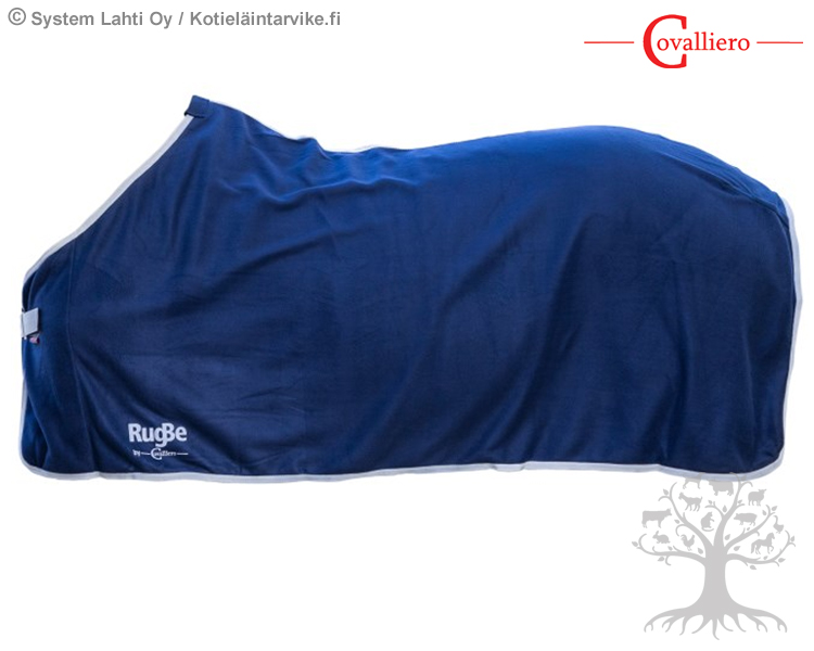 Covalliero Fleeceloimi Economic Navy. Laadukas, kevyt ja pehmeä fleeceloimi, joka sopii hyvin kuivatus- tai kuljetusloimeksi. Loimen ulkoreunoja kiertää hieno hopeanharmaa kanttinauha. Valmistettu micro-fleecekankaasta, joka on hyvin hengittävää materiaalia. Edessä on yksi tarranauhallinen kiinnitysremmi ja takana on häntäremmi. Konepestävä. Sopii erinomaisesti myös edustus- ja palkintoloimeksi.