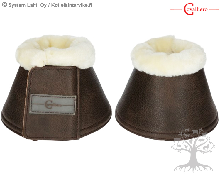 Covalliero Keinonahkabootsit Pelisa Dark Brown. Covallieron tyylikkäät keinonahasta valmistetut bootsit synteettisellä karvareunuksella. Bootsien 5.5mm paksu neopreenivuori ja pehmustettu yläreuna suojaavat hyvin hevosen kavioita, ruununrajaa ja vuohiskuoppaa sekä kantoja. Bootseissa pitävä tarranauhakiinnitys. Myydään pareittain.