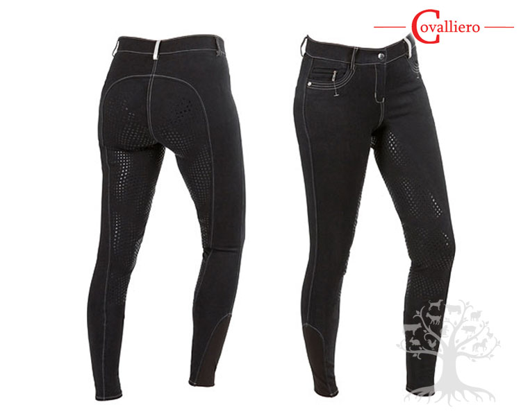 Covalliero Ratsastushousut Basic Full Grip Black. Erittäin laadukkaasta ja joustavasta puuvilla/elastaani-kankaasta valmistetut Full Grip-kokopaikkaiset ratsastushousut. Puuvillakangas on mukavan kevyttä, pehmeää, joustavaa ja erityisen hengittävää materiaalia.