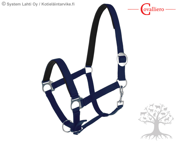 Covalliero Riimu Doria Navy. Laadukas, kestävä ja säädettävä nailonriimu, jossa portaaton säätömahdollisuus niska- ja turpahihnassa. Riimussa on turvalla sekä niskassa pehmusteet. Riimun kaikki soljet ovat teräksen väriset, poskihihnassa on pikalukko.