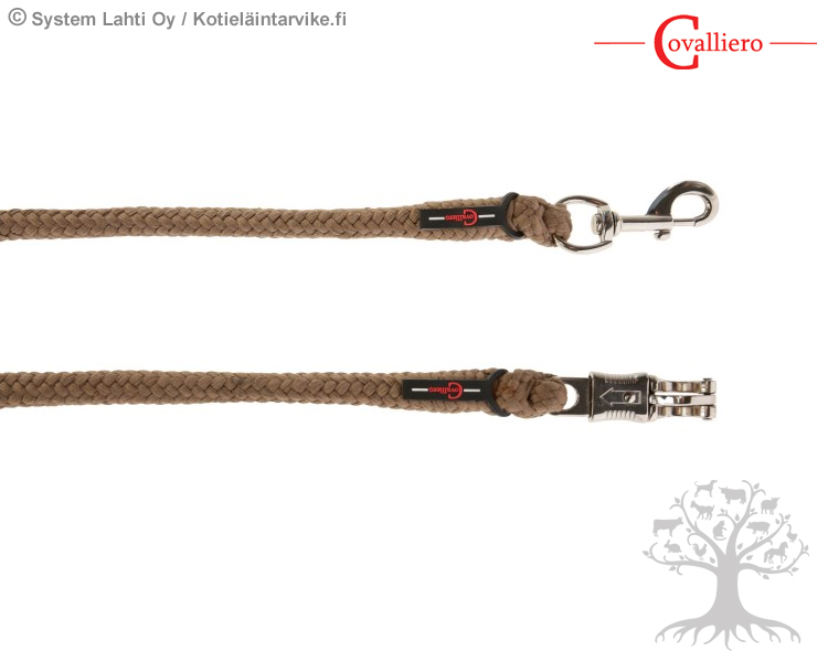 Covalliero Riimunnaru ClassicSoft Cappucino. Miellyttävän tuntuinen ja pitävä riimunnaru, jossa on teräksenvärinen lukko. Punottu riimunnaru on valmistettu helppohoitoisesta polypropeenistä. Riimunnarun pituus on 2m.