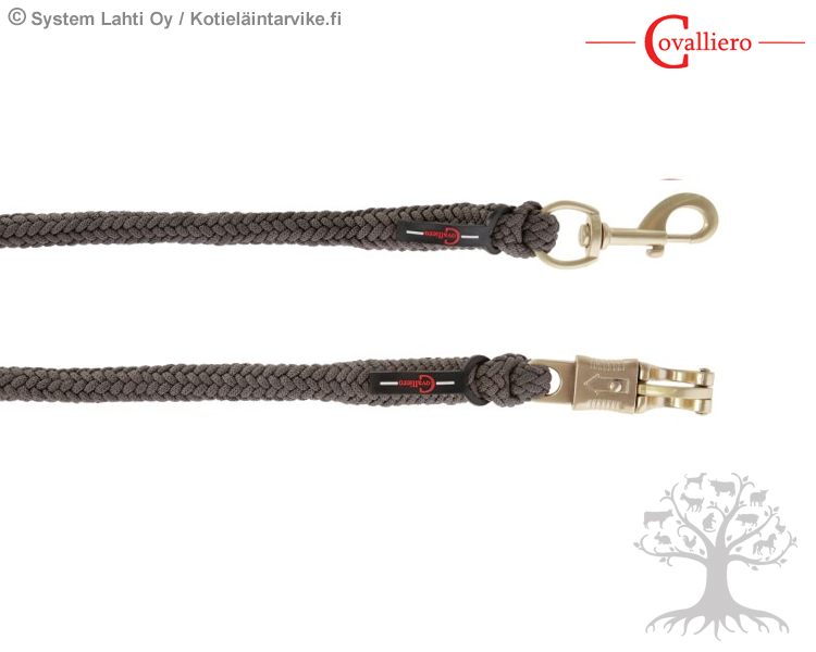 Covalliero Riimunnaru Classy Stone. Miellyttävän tuntuinen ja pitävä riimunnaru, jossa on mattakullan värinen lukko. Punottu riimunnaru on valmistettu helppohoitoisesta polypropeenistä. Riimunnarun pituus on 2m.