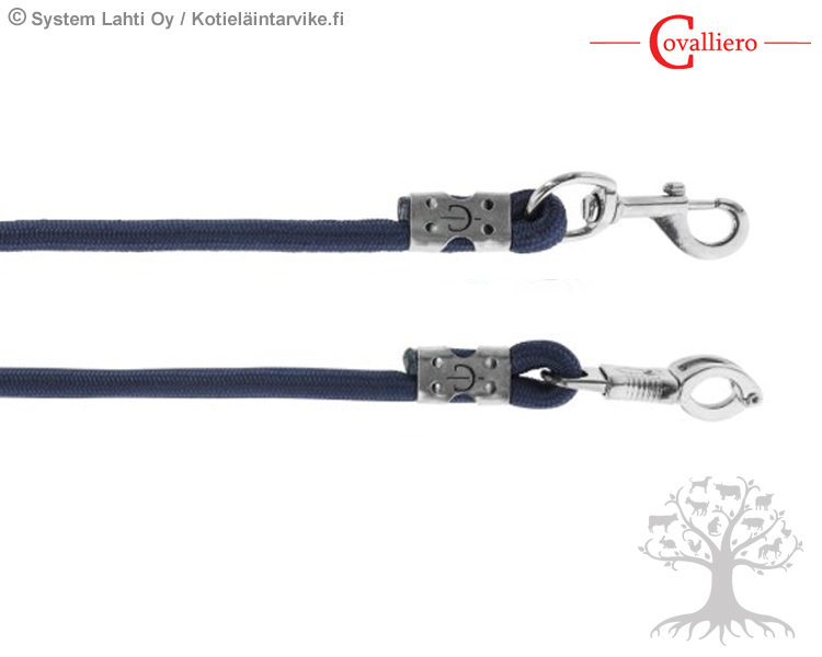 Covalliero Riimunnaru Dexter Marin. Kudotusta, kestävästä polypropeenista valmistettu riimunnaru. Narun materiaali takaa hyvän pidon. Riimunnarussa on teräksen värinen pikalukko ja toisessa päässä on narun ulkonäön viimeistelevä muovinen tuppi. Riimunnarun pituus on noin 2m ja paksuus 20mm.