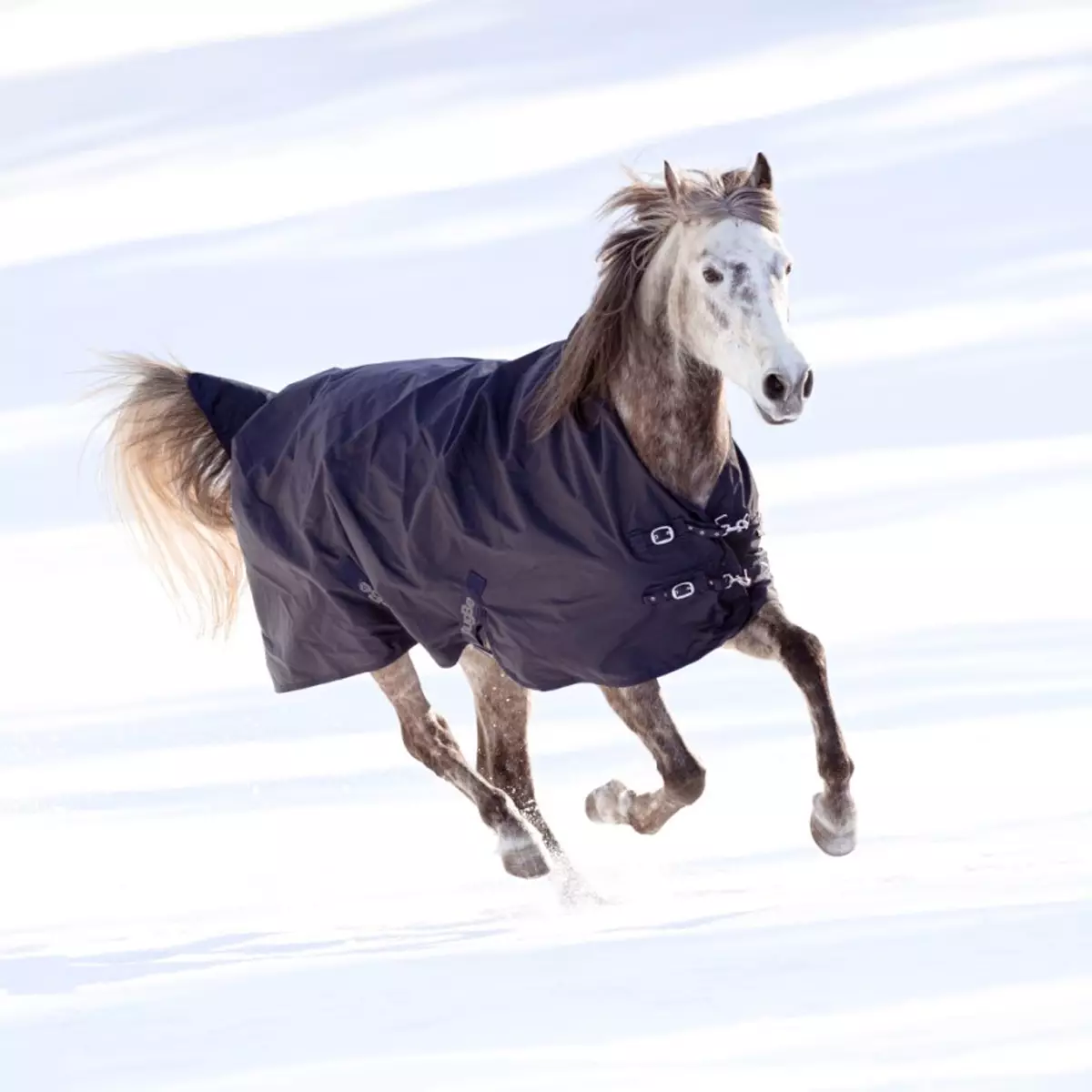 Covalliero Sadeloimi HighNeck Dark Navy. Laadukas ja hyvin istuva sadeloimi puolikorkealla (HighNeck) kaulaosalla. Sadeloimen päällyskangas on erittäin kestävää, veden- ja tuulenpitävää sekä helppohoitoista 600 Denierin Ripstop-kangasta. Loimessa on sileä nailonvuorikangas, joka ehkäisee mahdollisia hankaumia. Loimessa on joustolliset ristivyöt, edessä tarranauha ja kaksi säädettävää pikalukkoa, iso häntäläppä sekä joustavat jalkaremmit.