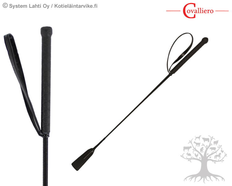 Covalliero Yleisraippa Jump Whip. Käsilenkillinen yleisraippa, jossa on pitävä PVC -muovinen kädensija. Raippa on valmistettu lasikuidusta, joka on päällystetty kestävällä nailonilla. Raipan kädensijan päässä on irrotettava käsilenkki ja toisessa päässä "nahkaläppä".