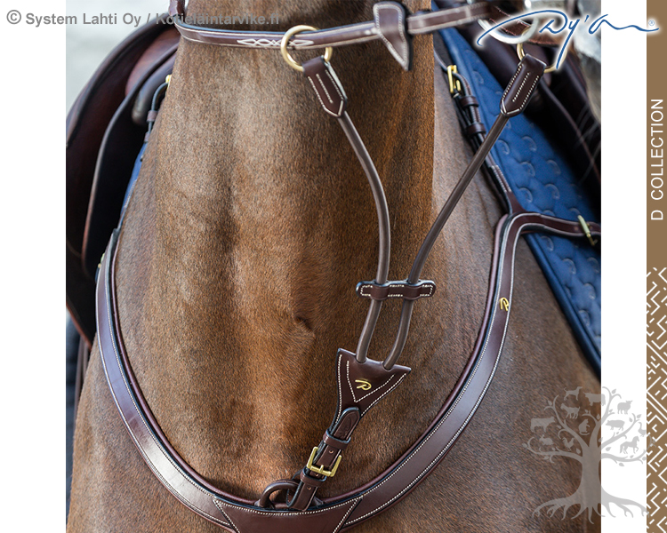 Premium D Collection -malliston tunnusmerkki on sen klassisen ajaton kauneus, hieno yksityiskohtainen viimeistely, kermanväriset tikkaukset ja messinkisoljet. D Collection on valmistettu erittäin korkealaatuisesta, kestävästä, hienosta, pehmeästä ja kasviparkitusta espanjalaisesta Dy’on -nahasta. Kaikki D Collectionin suitsiosat on vaihdettavissa eli niihin on saatavana vaihto- ja varaosia sekä niitä voidaan tilata suoraan erilaisin koko- ja osayhdistelmin. Lisäksi D Collection -mallisto sisältää paljon erilaisia ja samaan tyyliin sopivia ohjia, rintaremmejä, martingaaleja, apuohjia jne. Näin pystytään kokoamaan hyvinkin yksilölliseen tyyliin ja tarpeeseen sopivat, oikean kokoiset suitset. D Collection on ollut kautta aikojen yksi suosituimmista Dyon -mallistoista. D Collection -mallisto on alkujaan kehitetty ja kehitetään edelleen maailman parhaimpien kilparatsastajien tarpeisiin.