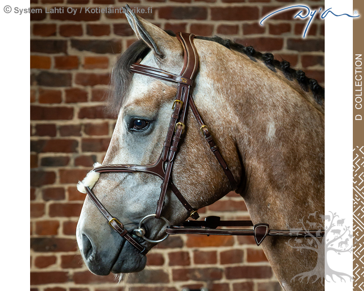 Premium D Collection -malliston tunnusmerkki on sen klassisen ajaton kauneus, hieno yksityiskohtainen viimeistely, kermanväriset tikkaukset ja messinkisoljet. D Collection on valmistettu erittäin korkealaatuisesta, kestävästä, hienosta, pehmeästä ja kasviparkitusta espanjalaisesta Dy’on -nahasta. Kaikki D Collectionin suitsiosat on vaihdettavissa eli niihin on saatavana vaihto- ja varaosia sekä niitä voidaan tilata suoraan erilaisin koko- ja osayhdistelmin. Lisäksi D Collection -mallisto sisältää paljon erilaisia ja samaan tyyliin sopivia ohjia, rintaremmejä, martingaaleja, apuohjia jne. Näin pystytään kokoamaan hyvinkin yksilölliseen tyyliin ja tarpeeseen sopivat, oikean kokoiset suitset. D Collection on ollut kautta aikojen yksi suosituimmista Dyon -mallistoista. D Collection -mallisto on alkujaan kehitetty ja kehitetään edelleen maailman parhaimpien kilparatsastajien tarpeisiin.